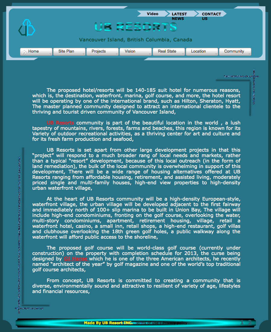 Another new name – same old same old. Now Union Bay Resorts. Notice the casino? Looking for investors for a development that hasn’t any water?????????