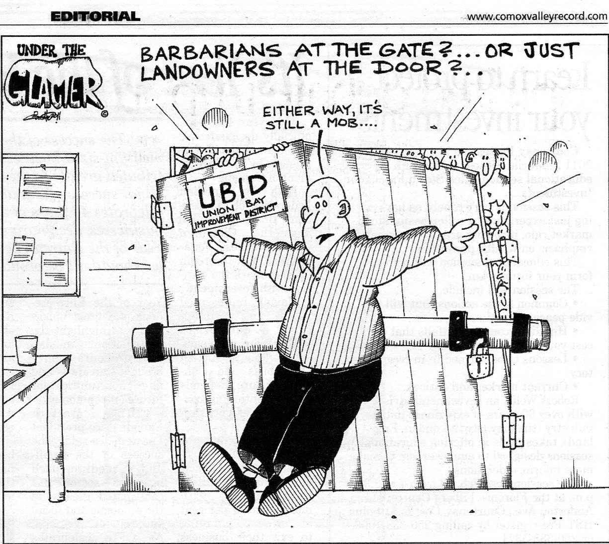 Cartoon from Comox Valley Record when Union Bay electorate locked out in January 2011.