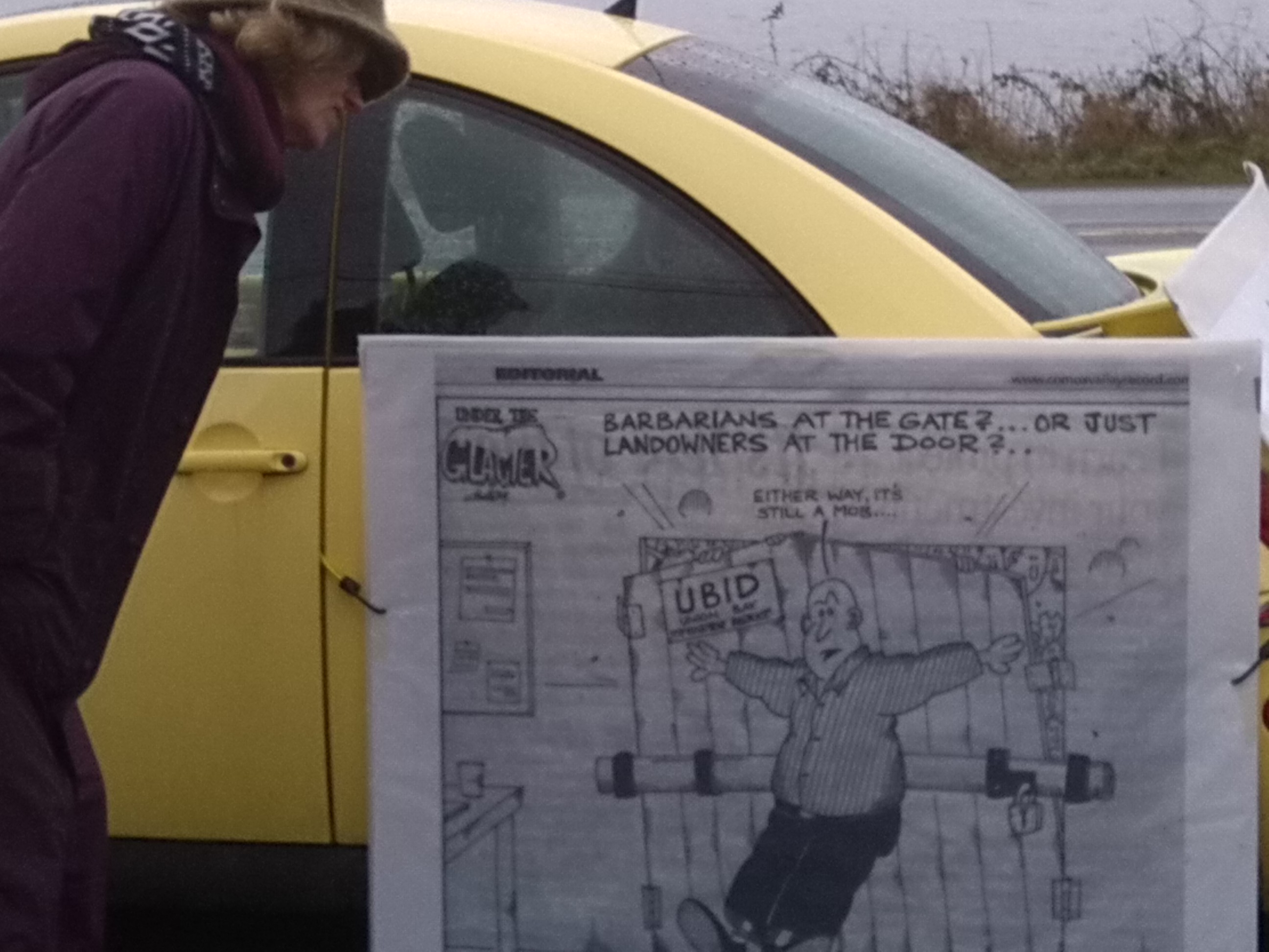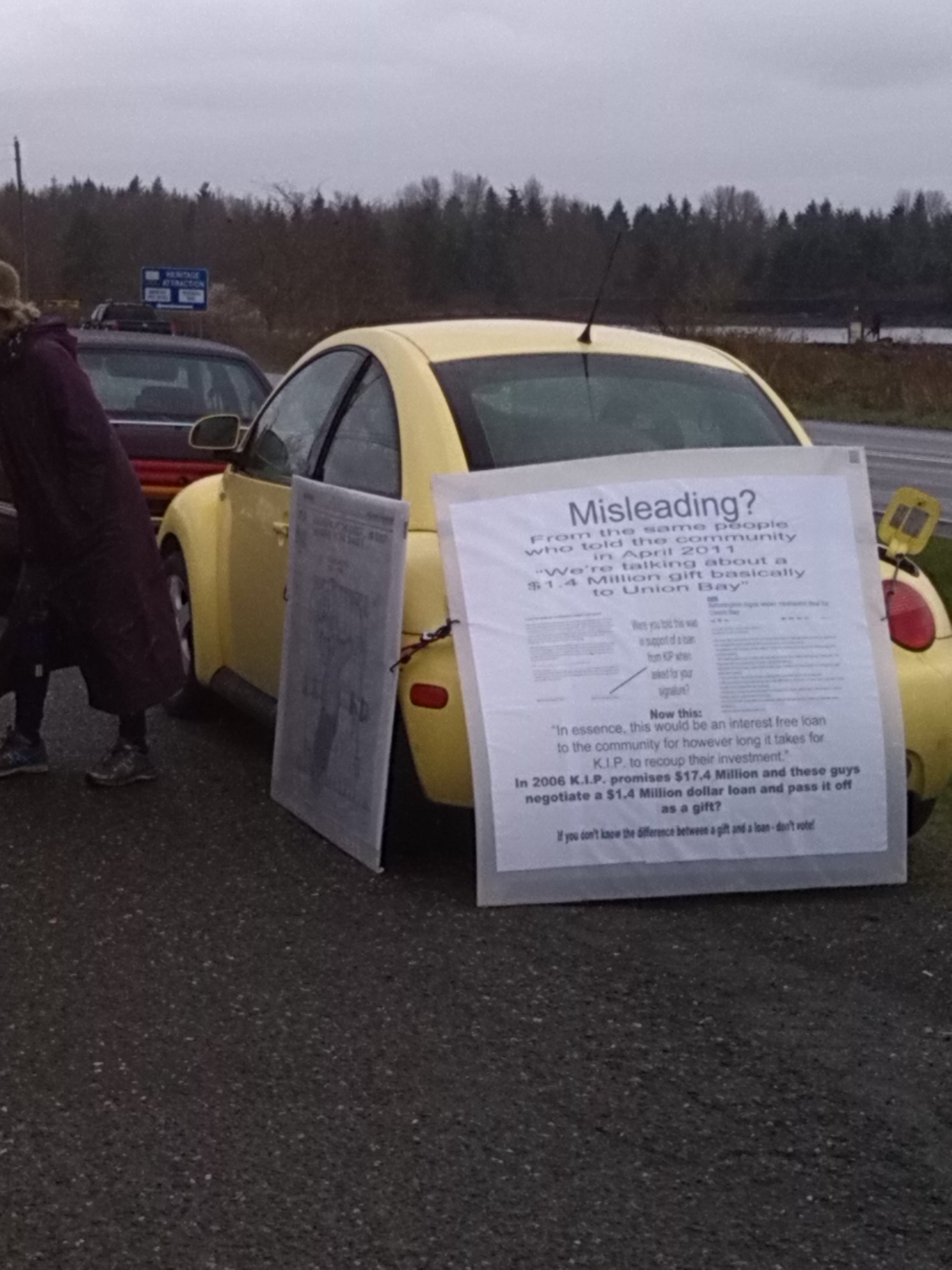 The VP got out of his truck and came over to take a picture of my signs. He never asked me anything. He then drove down to the Union Bay Improvement District office and went in but apparently he didn’t make a complaint even though he acted like I was doing something wrong. Was he trying to intimidate me?