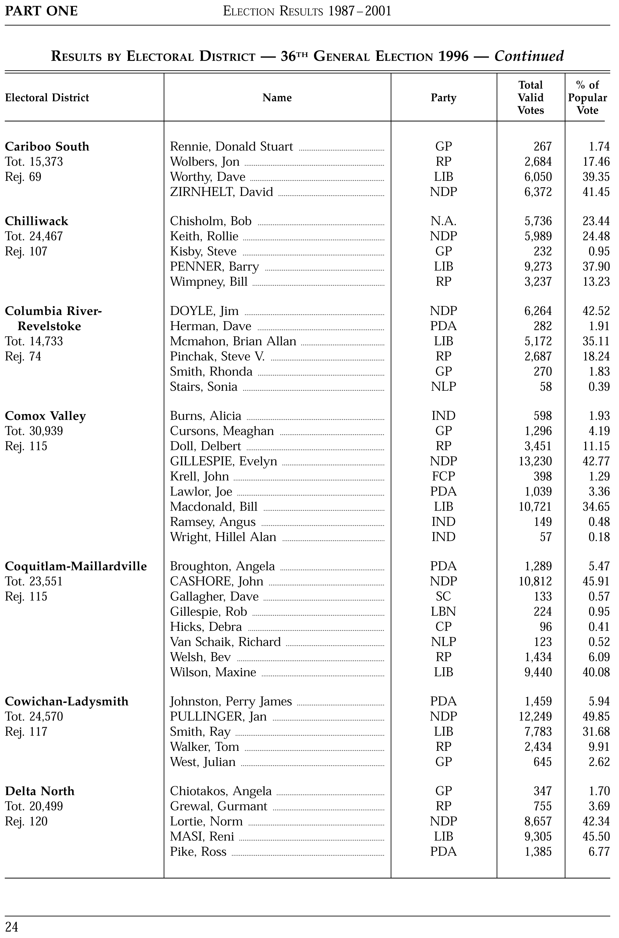 Columbia River – Revelstoke: McMahon, Brian Allan – loser 1996 Election.