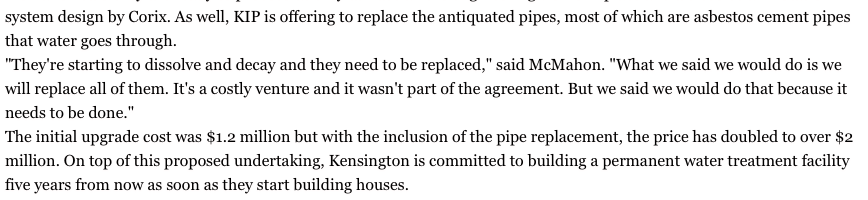 The previous quotes are from the Comox Valley Echo article “Kensington’s offer to upgrade Union Bay’s water system uncertain”
