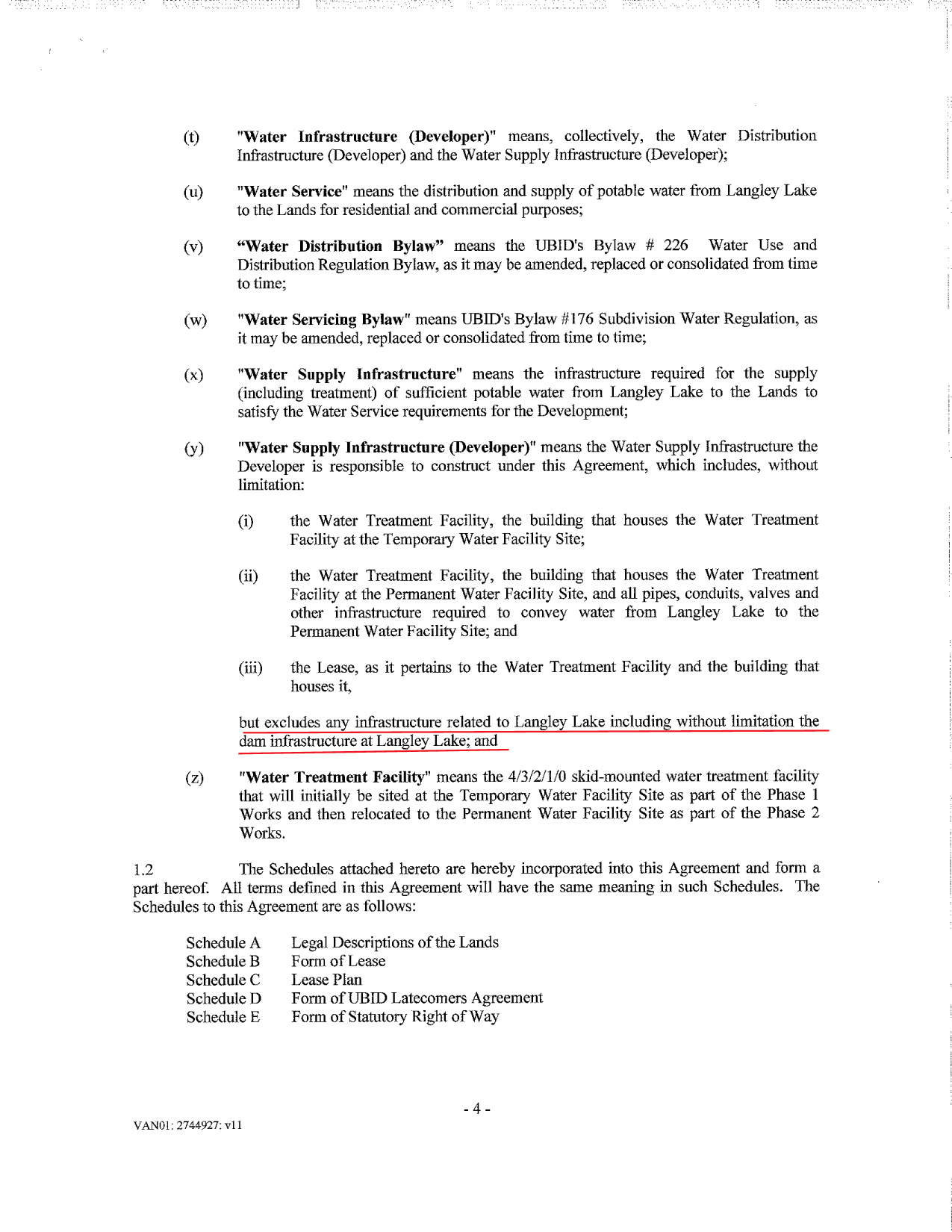 It clearly excludes any infrastructure related to Langley Lake including without limitation the dam infrastructure at Langley Lake: