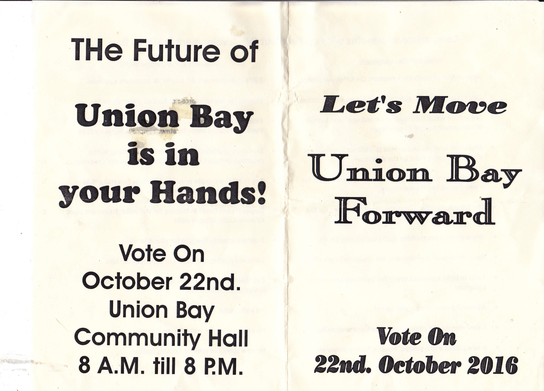 All Candidates Meeting October 19, 2016 from 7 – 9 pm. Union Bay Community Hall.