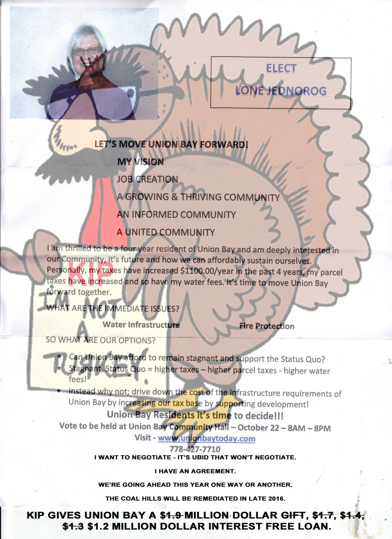 All Candidates Meeting October 19, 2016 from 7 – 9 pm. Union Bay Community Hall.