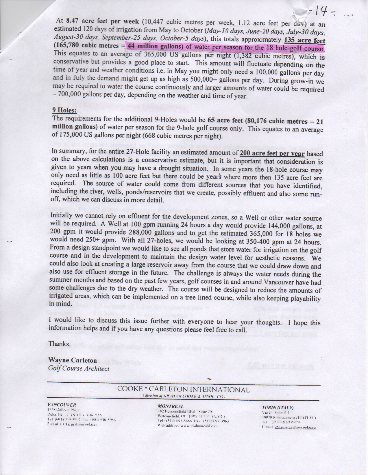 Kensington Island Properties aka 34083 Yukon Inc. Golf Course Irrigation Requirements – April 25, 2005
