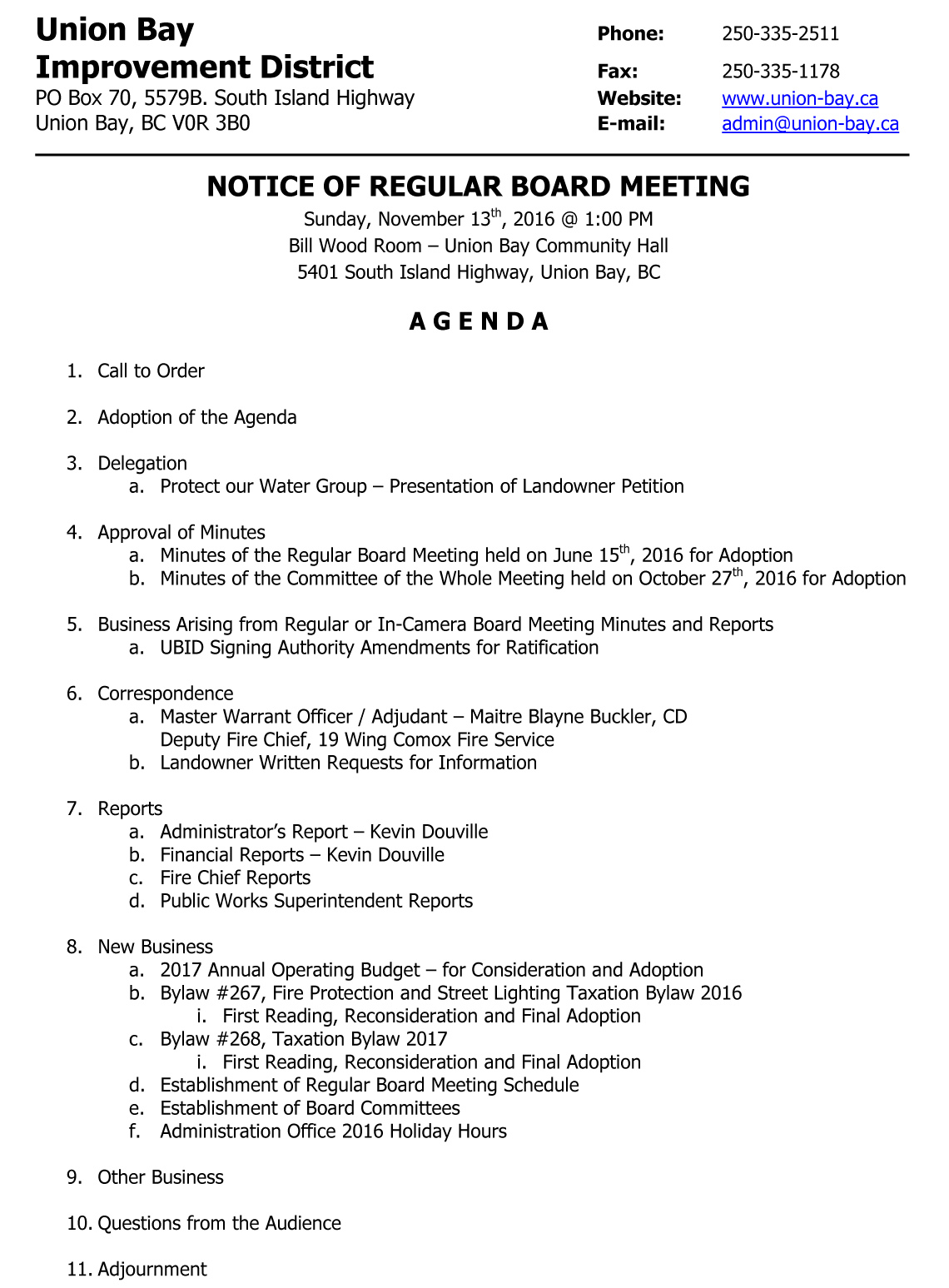 Yeah; the 2017 operating budget will not be revealed to the public at this meeting but asked for Board approval and a cash flow statement will not be presented so capital spending will not be revealed. Planning for the resurrection of the expired WIA ? Poor taxpayer! Good Luck