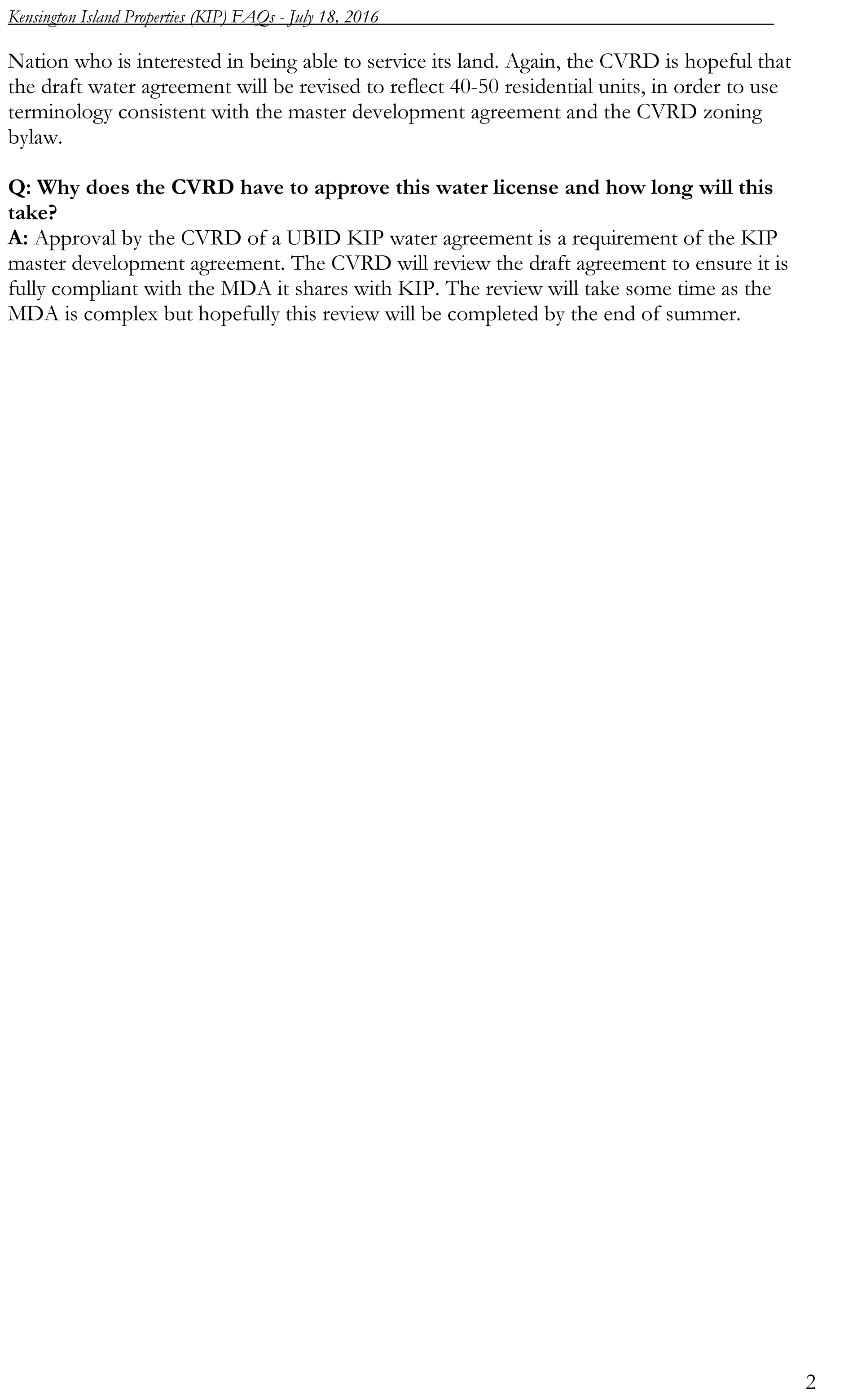 Please accept this as my objection to the vote taken by the majority of the trustees on Sunday Nov. 13, 2016, granting 34083 Yukon Inc. the authority to proceed based on the expired agreement. I have many objections to this agreement but my concern is the actions taken by trustees Bitten, Jacques and Loxam knowingly entering into an agreement which violates our water license by granting 34083 Yukon Inc. 500 water hookups which exceeds the 1045 allowed. I cannot express my shock that no consideration has been taken to protect the landowners from liability. I would hope that you or our lawyers will be able to prevent putting us at financial risk.