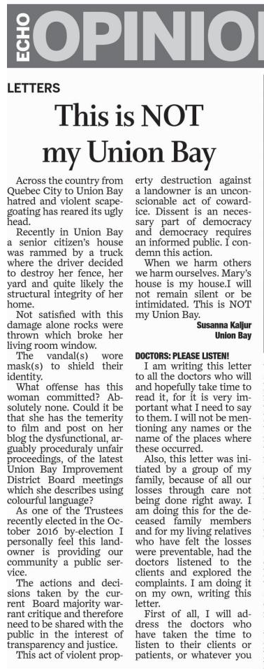 Thanks to fellow landowner Susanna Kaljur for having the courage to speak up.