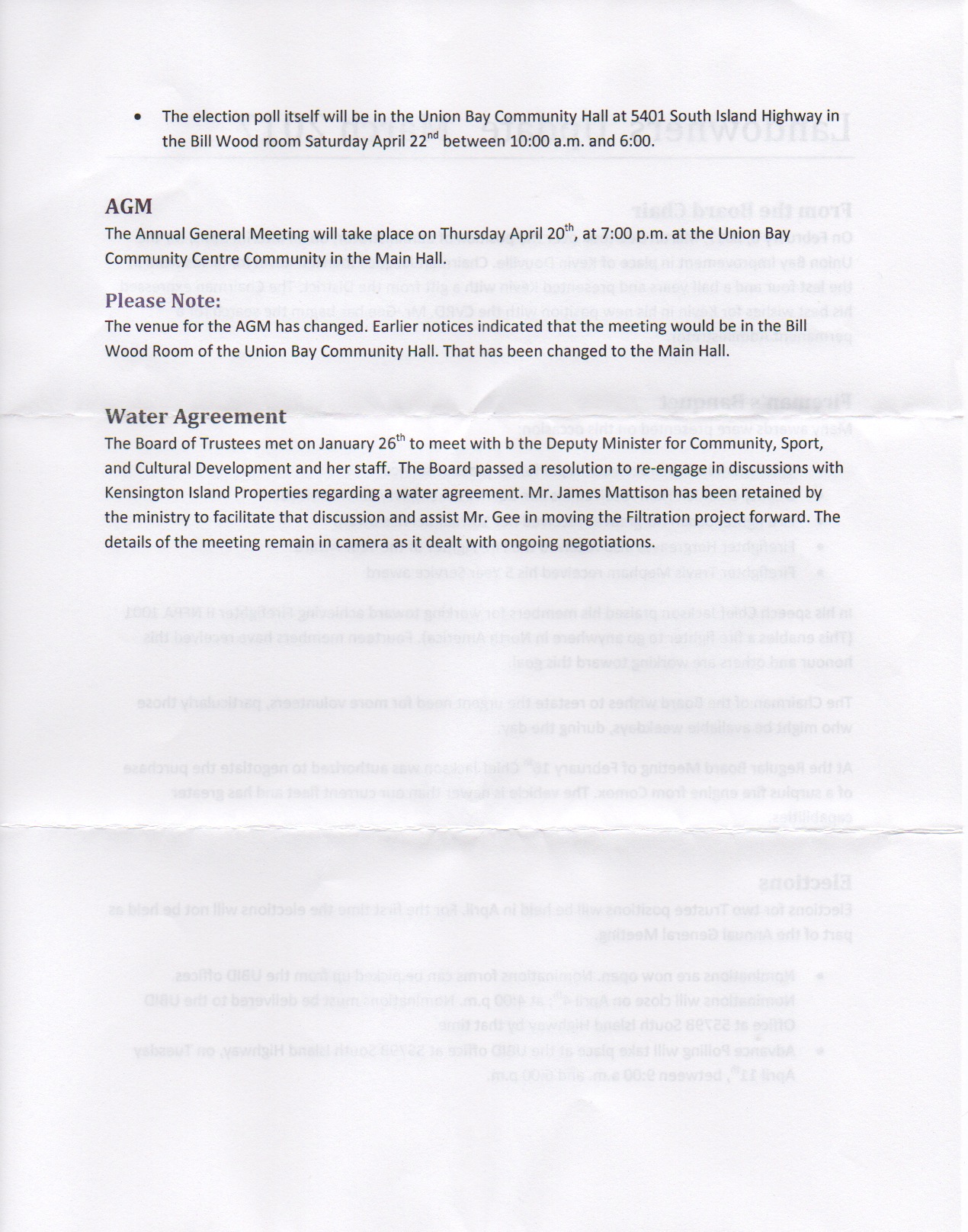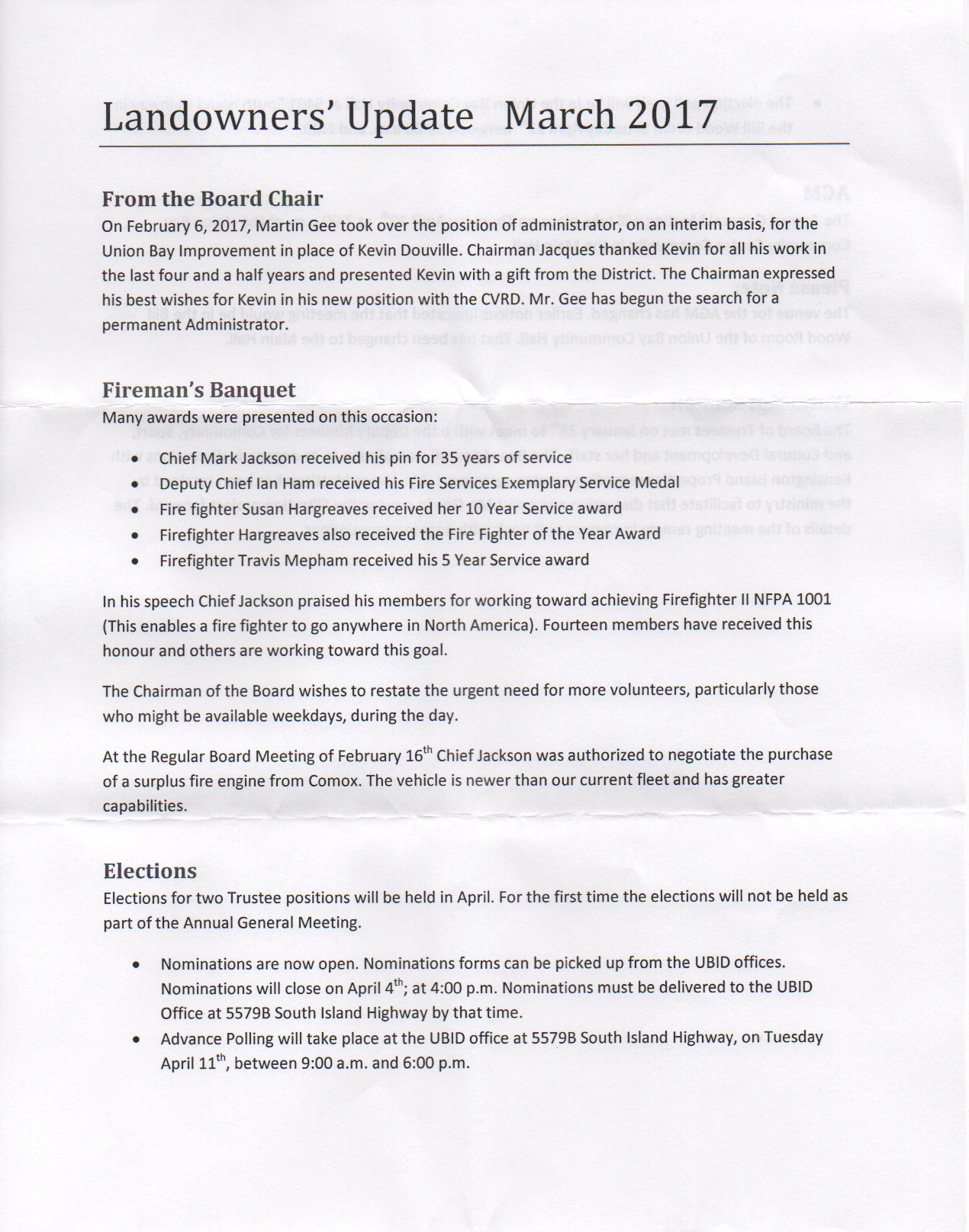 Since July 2016 when Trustees Loxam and Jacques assumed the role of “caretaker”, this is everything they have communicated to the landowners of Union Bay.