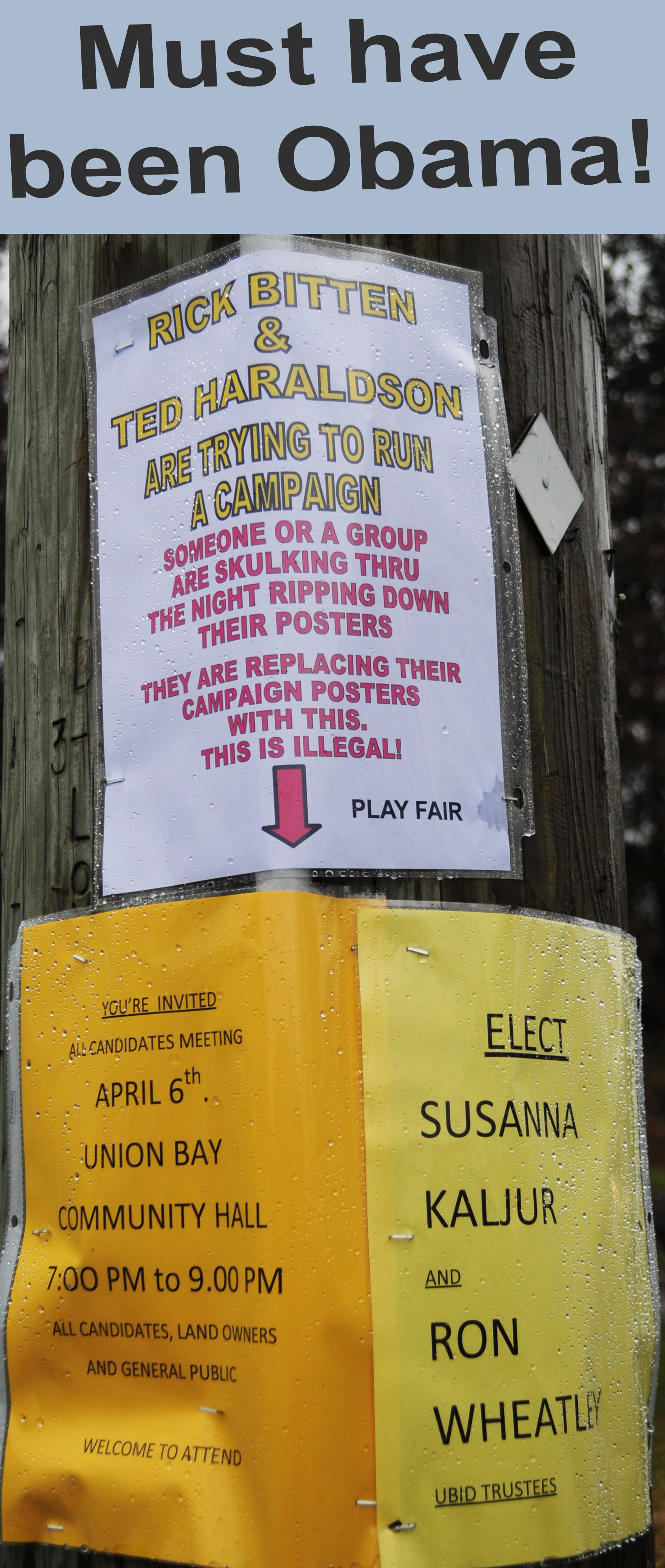 Security guards were hired for the April 6, 2017 All Candidates Meeting to prevent the Union Bay Morality Police from disrupting an event for a second time. In spite of accepting the invitation which included the rules with the #1 Rule being: the meeting will be video and audio recorded, Candidate Rick Bitten attempted to have the camera turned off because he did not want to be recorded. Wrong again Rick – if you can’t accept the rules – don’t attend. Just like you should have stayed home Oct. 19, 2016 if your group paranoia was raging about a supposed ambush.