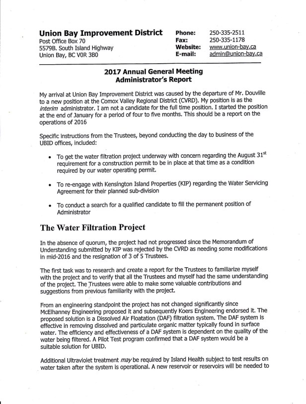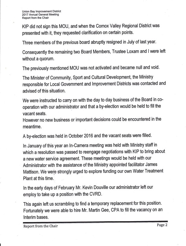 NOTE: absolutely no mention of the Nov. 2016 actions by Jacques, Bitten and Loxam in their failed attempt to resurrect that lousy expired 2011 Water Infrastructure Agreement.