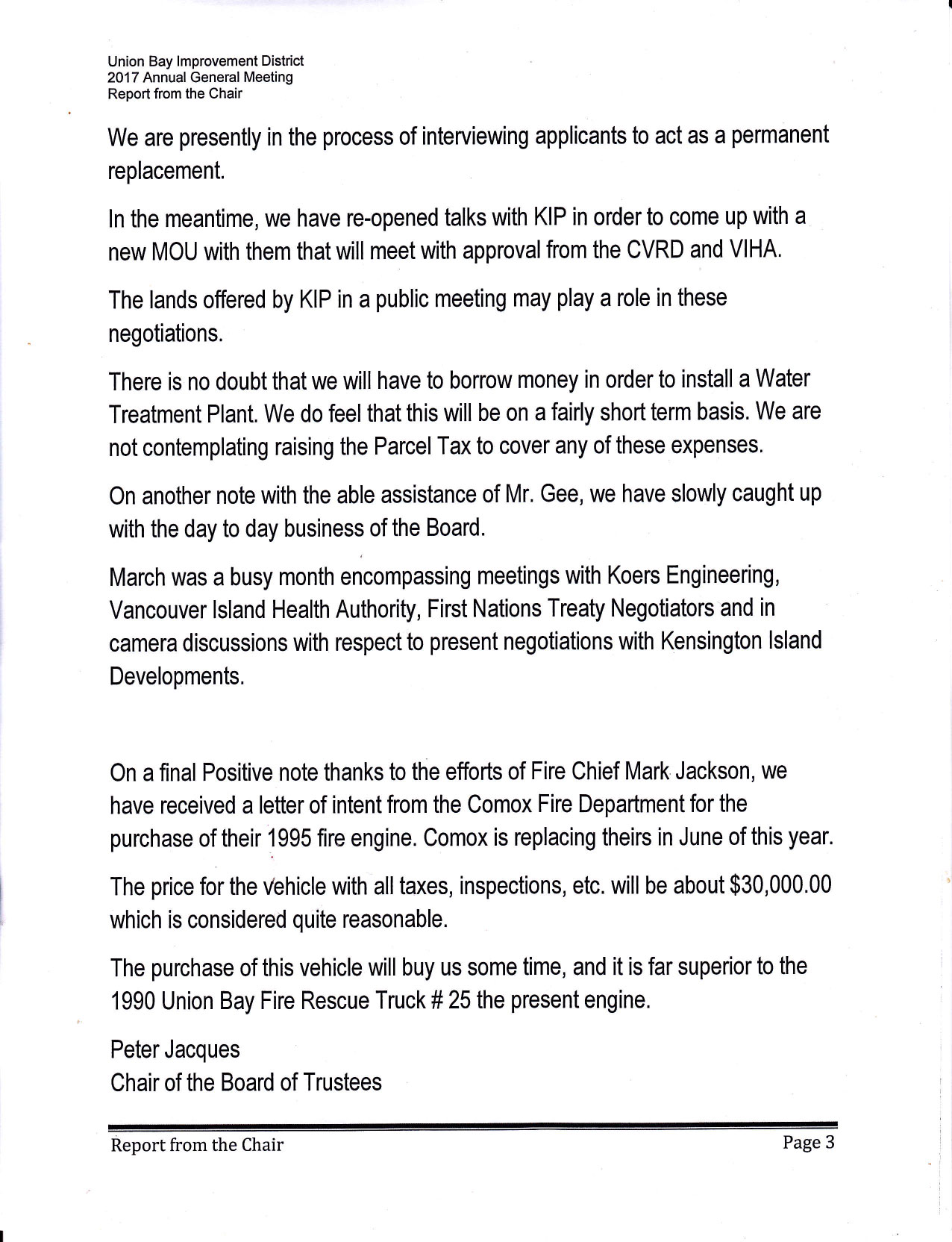 NOTE: absolutely no mention of the Nov. 2016 actions by Jacques, Bitten and Loxam in their failed attempt to resurrect that lousy expired 2011 Water Infrastructure Agreement.
