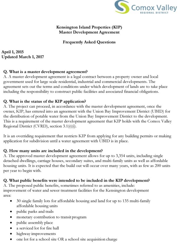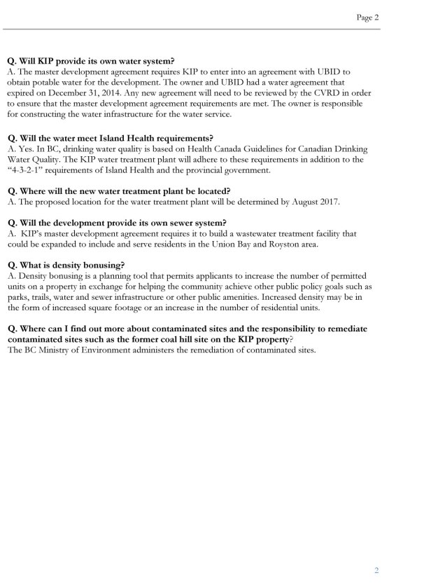 This is from 2015 but was updated March 1, 2017 and is available at the CVRD website. Does anyone really believe KIP is going to build a sewage treatment system? KIP hasn’t provided any plans for water and sewage in the last 20 years.