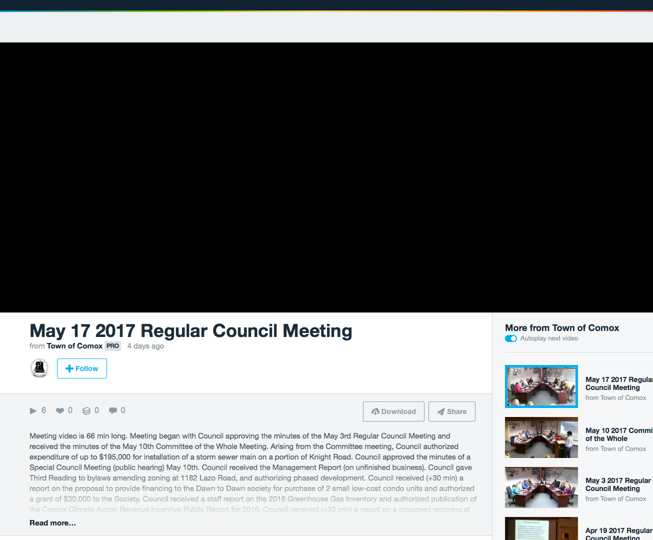 Here’s one of the Comox Council videos embedded on my blog using their share button: