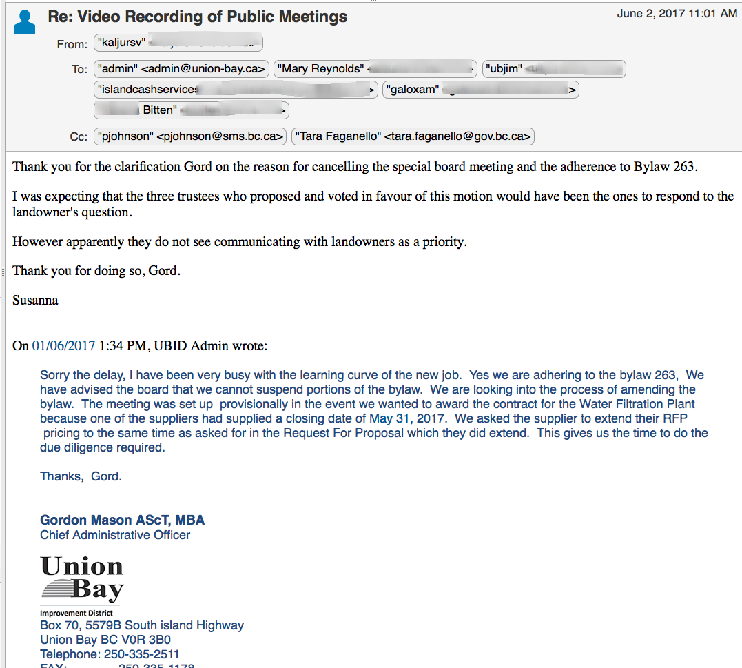The Chair’s speech at the Annual General Meeting is a perfect example. No mention of the June 7, 2016 letter from KIP when Loxam and Jacques negotiated a preliminary deal with KIP without the knowledge or approval of the entire Board of Trustees. No mention of the vote in November 2016 to enable the force majeure clause in that lousy EXPIRED 2011 Water Infrastructure Agreement. Poof – didn’t happen.