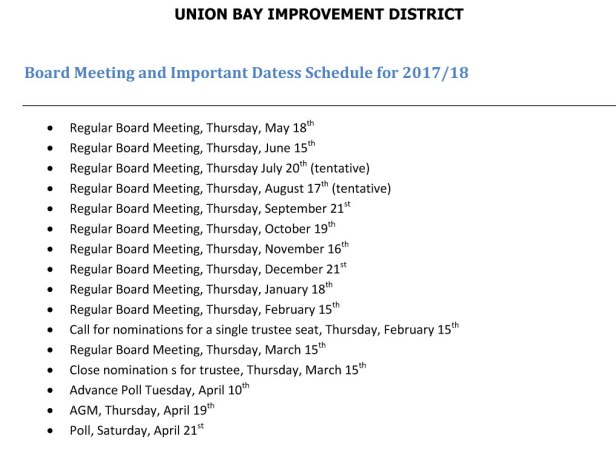 UBID is obligated to advise in advance of public board meetings. Nothing to date and there is no change to the current schedule posted on UBID’s website.