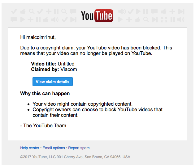 I posted a short clip of The Daily Show with Trevor Noah on Youtube to see what would happen and I received the following: