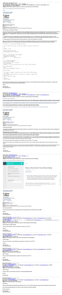 You will note in this email exchange the Admin responds to my emails from June 16, 2017 on August 16, 2017 only because Trustee Elliott was acting Chair.