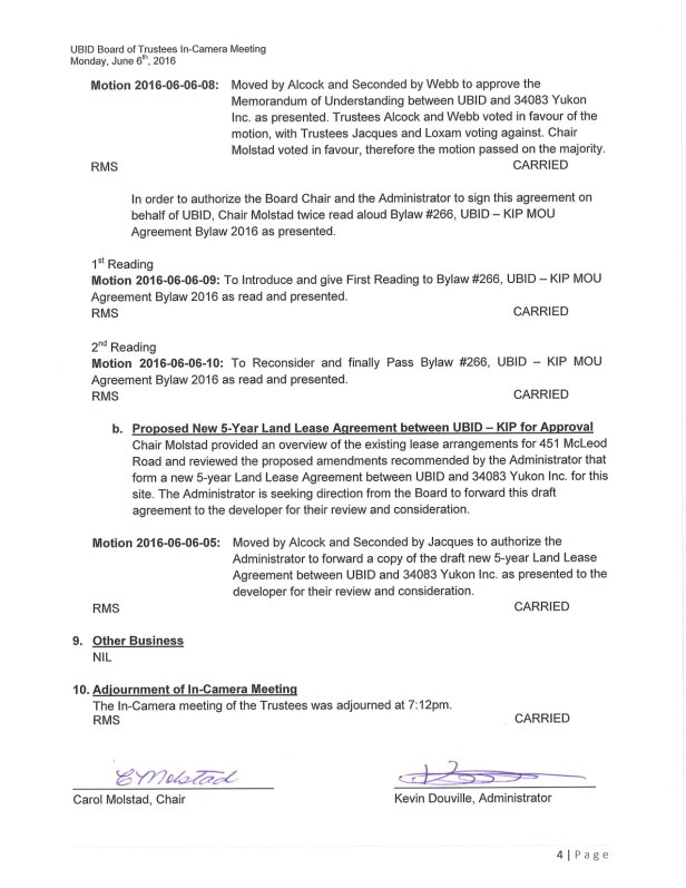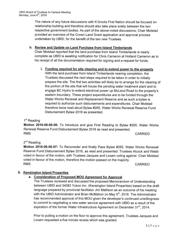 So that was April 2016 and then on June 6, 2016 Jacques and Loxam both voted against the Memorandum of Understanding put together by the Facilitator James Mattison who the VP of KIP managed to get appointed when he went crying the blues to Liberal buddies Don McRae and Peter Fassbender.