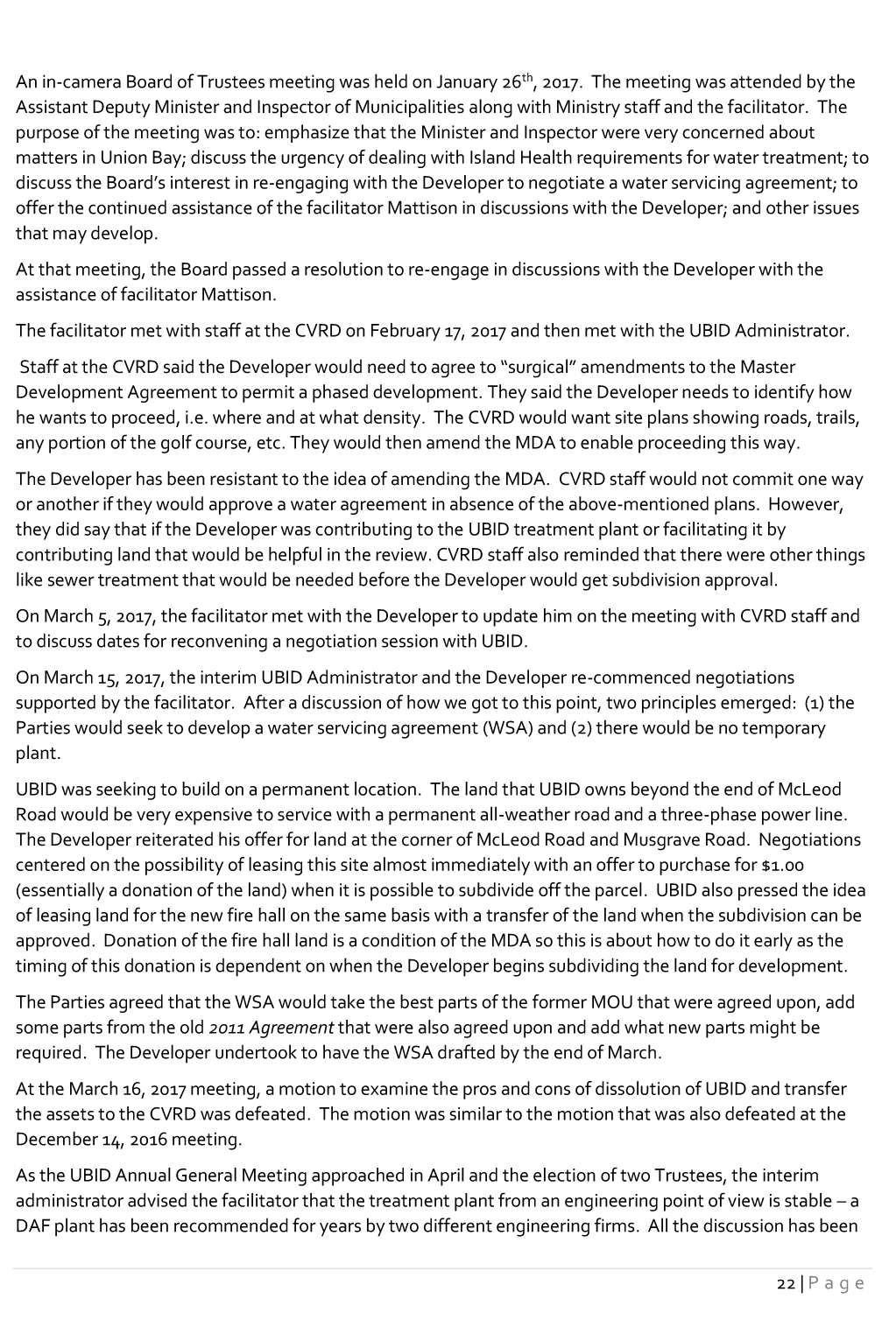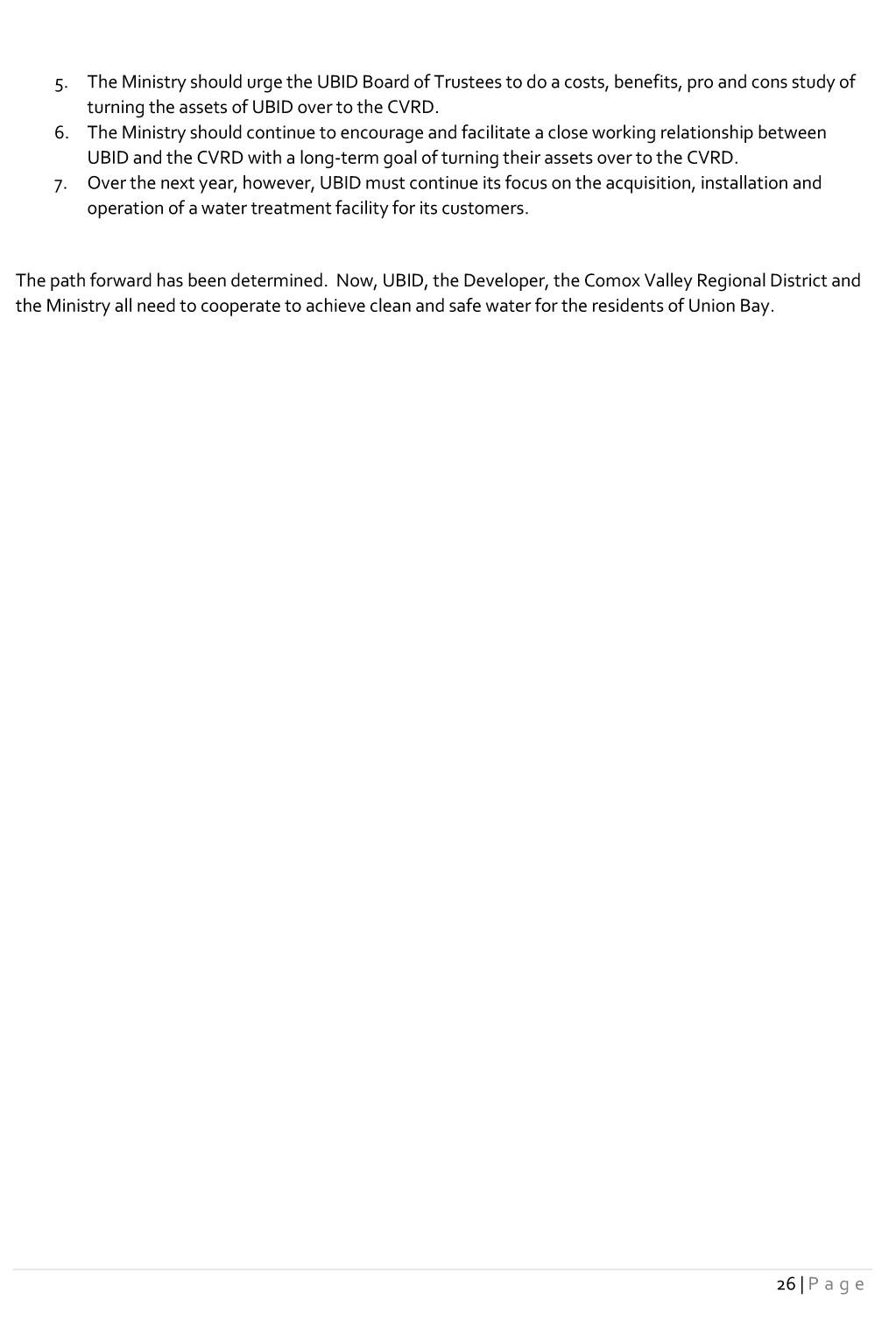 5. The Ministry should urge the UBID Board of Trustees to do a costs, benefits, pro and cons study of turning the assets of UBID over to the CVRD.