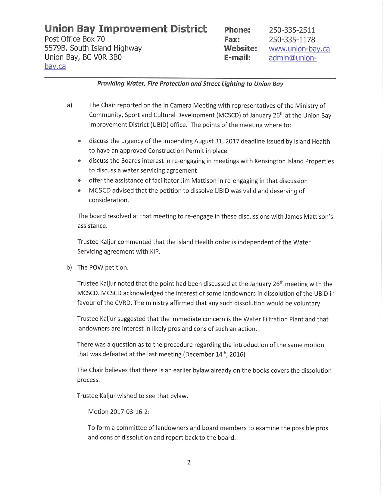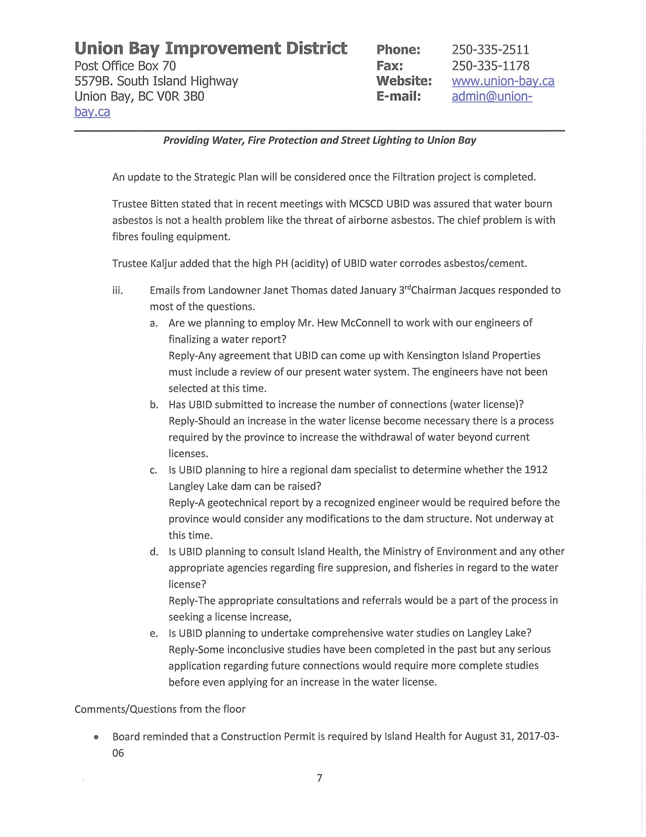 To: “admin” <admin@union-bay.ca>