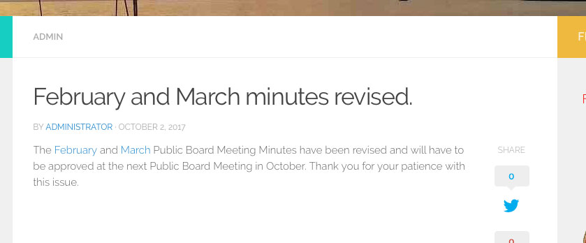 So here we are in October and now the Administrator acknowledges an error but what is he doing? He’s reverted Feb. and March minutes to ‘draft’ and he will have the board approve and sign at the upcoming October meeting.