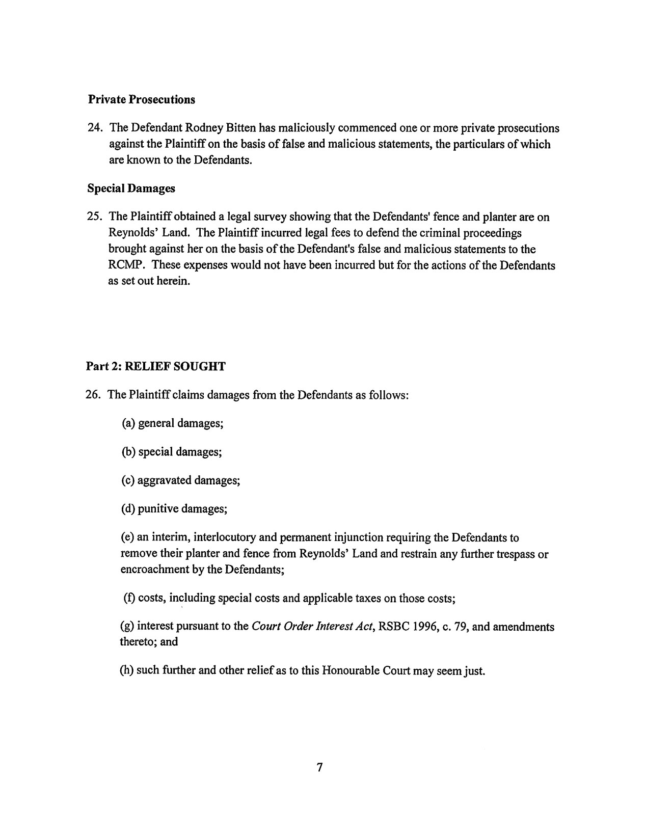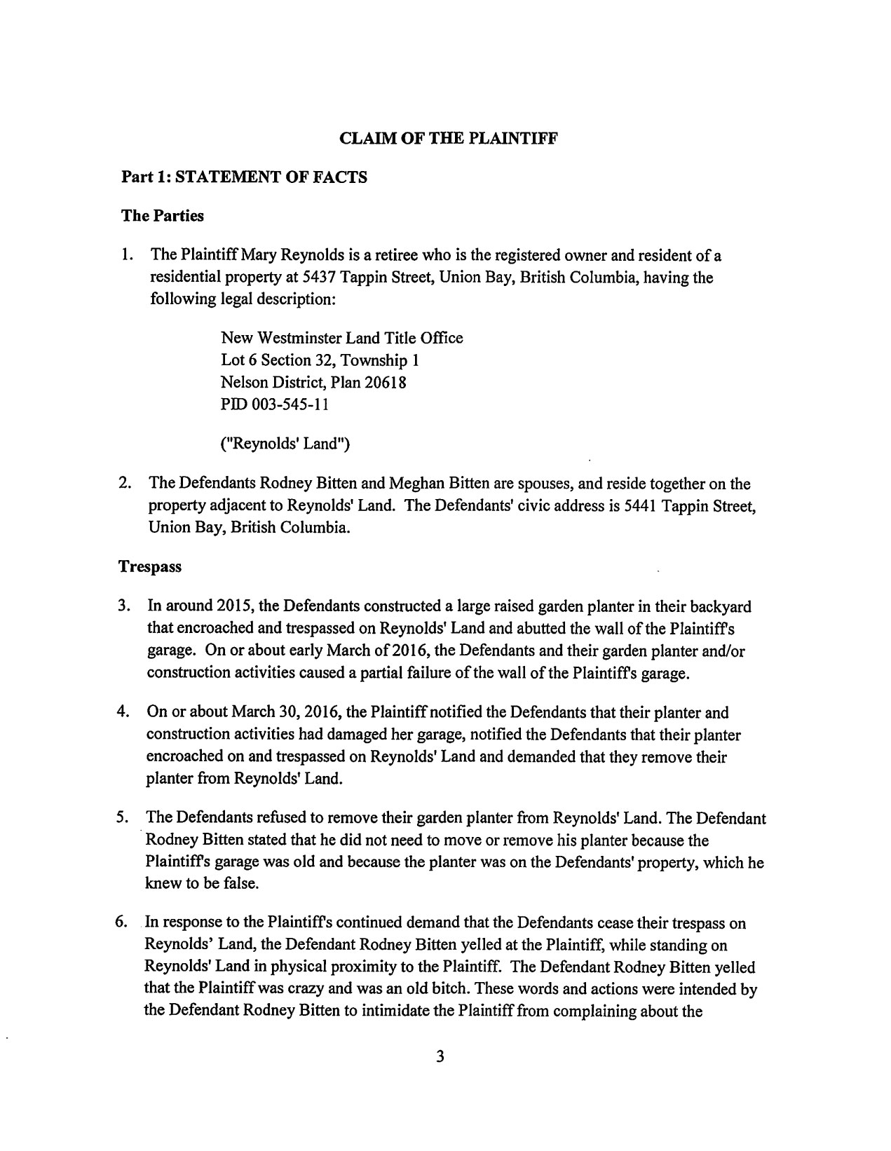 Mary Reynolds VS Rodney Bitten and Meghan Bitten.