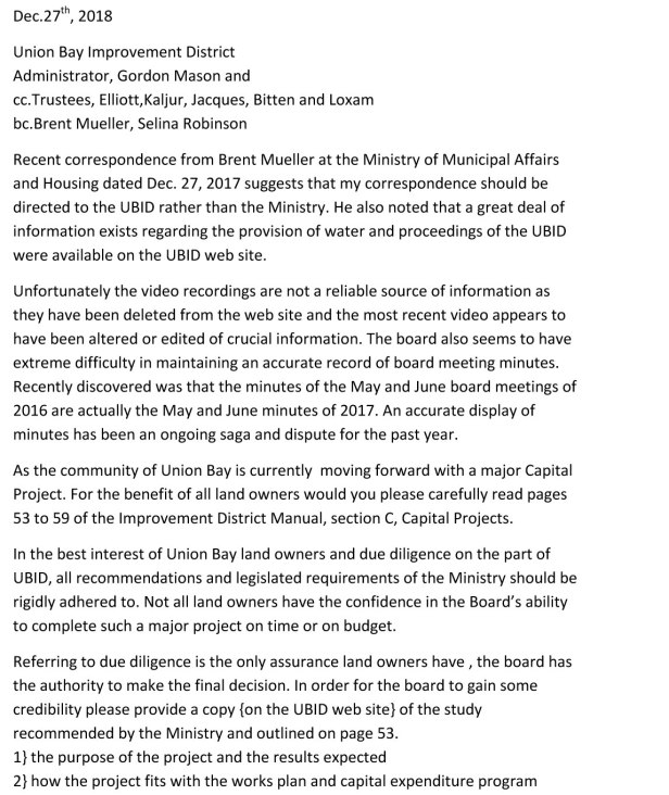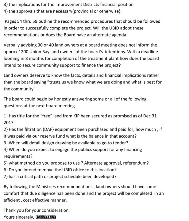 This is the response from the WIFE of a Trustee to a letter sent in an email to the Admin and all trustees asking questions regarding UBID issues. Correspondence sent to an elected official about Union Bay Improvement District business. Who the hell does she think she is?