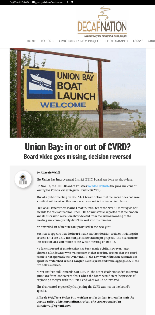 Excerpt from Feb. Meeting with the Chair stating “The CVRD doesn’t want anything to do with UBID. They didn’t want to get stuck with a system that requires nothing but money and a lot of work to get into place.”