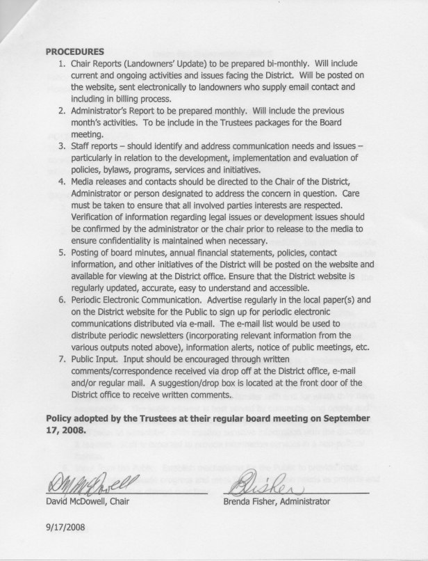 The chair doesn’t want this policy discussed in public and so the majority has decided to hold Executive meetings. Not ‘in camera’ – so that means they are open to the public but they are counting on no one being aware of these ‘Executive’ meetings.