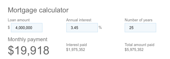 $4 Million at 3.45% amortized over 25 years Interest paid $1,975,352.00
