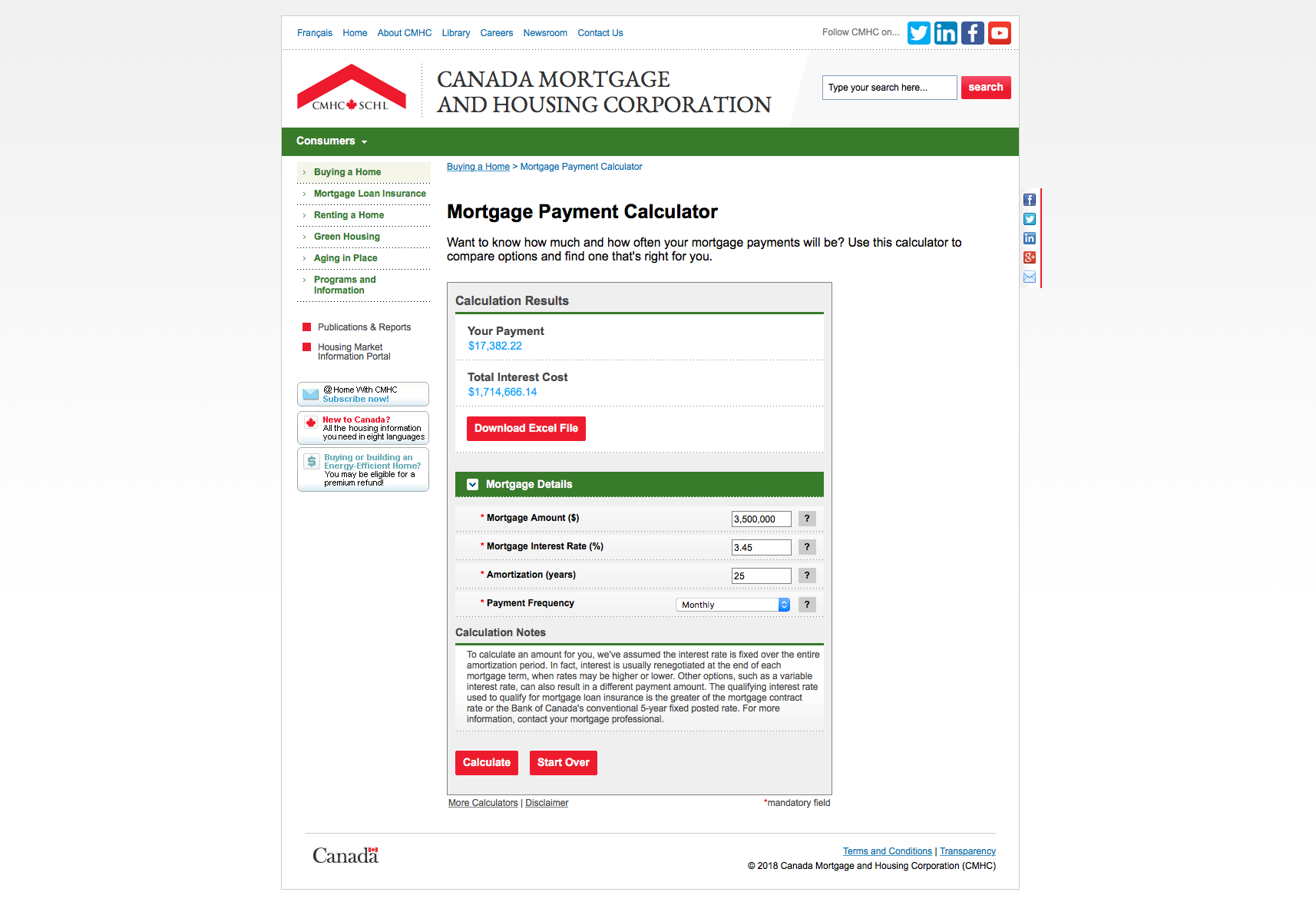 $2 Million at 3.45% amortized over 25 years Interest paid $979,809.22
