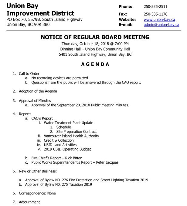 Locations: Fanny Bay Hall, Union Bay Hall, Royston Community Hall,