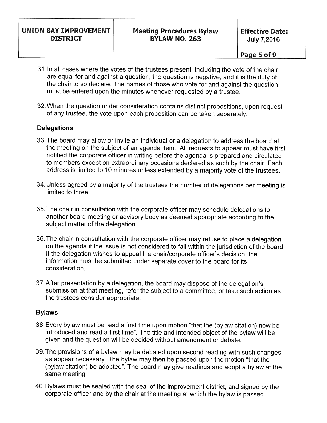 9. All regular meetings of the board are open to the public except where the board passes a resolution to close the meeting, or a portion of it, to the public. The resolution to close a meeting is to state in general terms the reason(s) for closing the meeting. (Refer to requirements in policy “Closed Meetings”.)