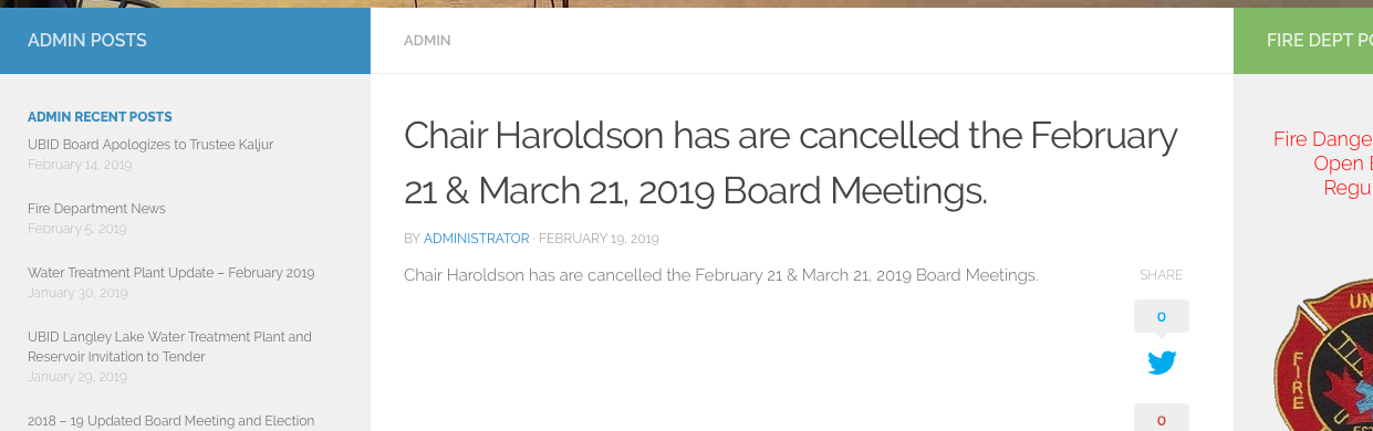Dunning-Kruger effect again. “Chair Haroldson has are cancelled the February 21 & March 21, 2019 Board Meetings.” Isn’t his name Haraldson? Has are cancelled?