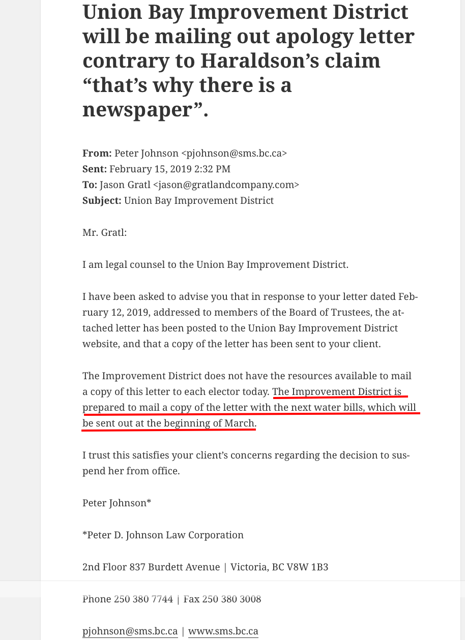 Dictatorship, Hillbilly, UBID Haraldson caved on the apology letter being mailed out – one defeat after the other because of incompetent/uniformed decisions – resign! Date: February 26, 2019Author: allthingsunionbay 0 Comments New post on Susanna Kaljur’s blog. https://unionbay.news.blog/2019/02/26/union-bay-improvement-district-will-be-mailing-out-apology-letter-contrary-to-haraldsons-claim-thats-why-there-is-a-newspaper/ Share this: Click to share on X (Opens in new window) X Click to email a link to a friend (Opens in new window) Email Click to share on Facebook (Opens in new window) Facebook Click to print (Opens in new window) Print Like Loading...
