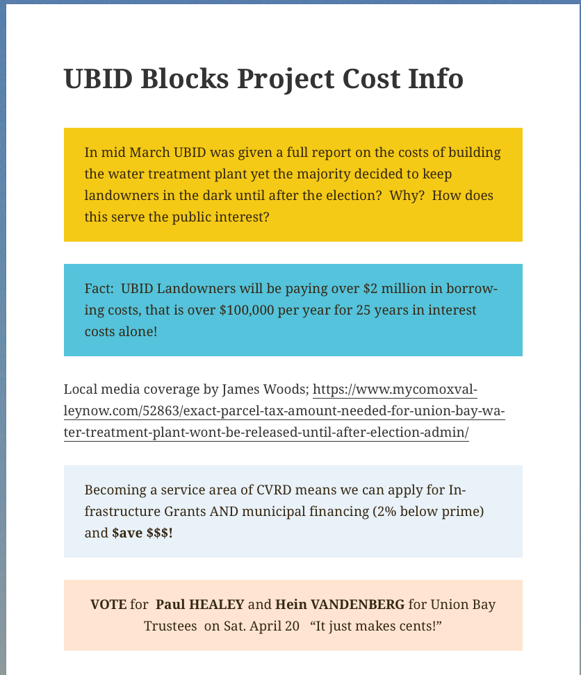 The following from Susanna Kaljur’s blog. Obviously, she isn’t receiving any more information than the rest of us. Only the chosen are allowed information. https://unionbay.news.blog/2019/04/16/ubid-blocks-project-cost-info/
