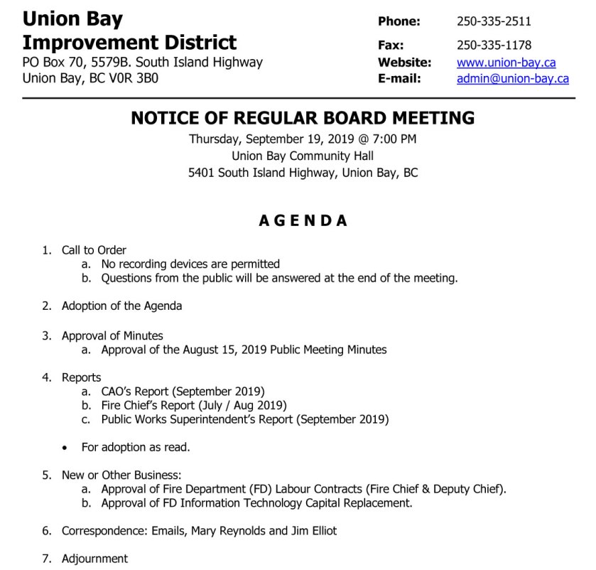 Noticed Paul Allard has info on the Sept. 19, 2019 meeting and Robert’s Rules. https://newdaysinunionbay.com/2019/09/20/union-bay-improvment-district-point-of-order-mr-chair-point-of-order-point-of-order/
