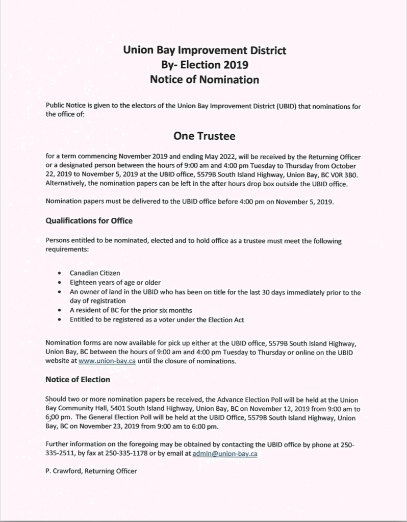 EDIT: I’d like to make a prediction based on what I witnessed last night with 3 trustees guessing about locations, times, etc. This by election is going to be screwed up because the admin hasn’t learned from past mistakes and the trustees are unaware of what the admin should know – IF there are at least 2 candidates since there won’t be an election if there is only one candidate. Here’s the notice posted Fri. Oct. 18, 2019. https://drive.google.com/open?id=1aye9Fvm0DzYTU4lWb_6VmHa79ZJ29prW#new_tab