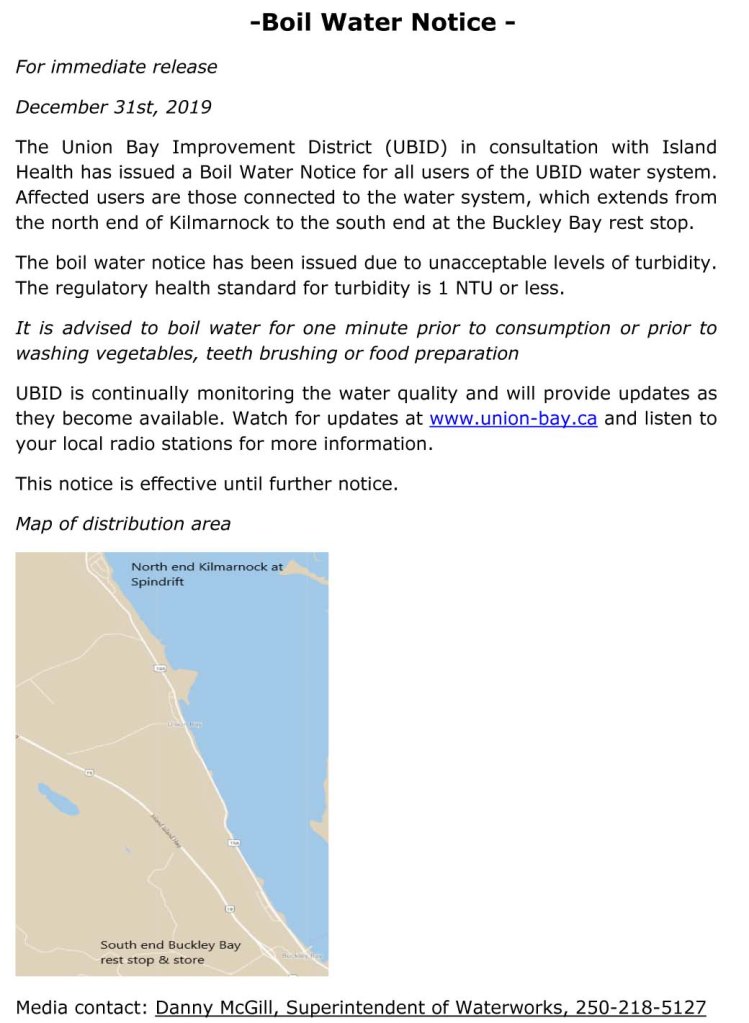 UBID Union Bay ending one year and starting another with Boil Water Notice, again! Date: December 31, 2019Author: allthingsunionbay 1 Comment From UBID https://drive.google.com/open?id=1KDx4HzmkKpGNRBKumztuY2DfWSyHX6Gy#new_tab Share this: Share on X (Opens in new window) X Email a link to a friend (Opens in new window) Email Share on Facebook (Opens in new window) Facebook Print (Opens in new window) Print Like Loading...