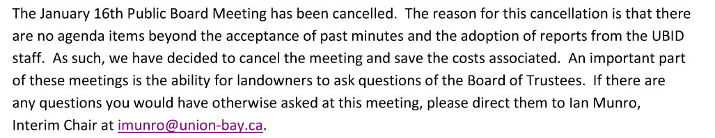 Again, a good sign – a Trustee who believes it is important for landowners to be able to ask questions. imunro@union-bay.ca