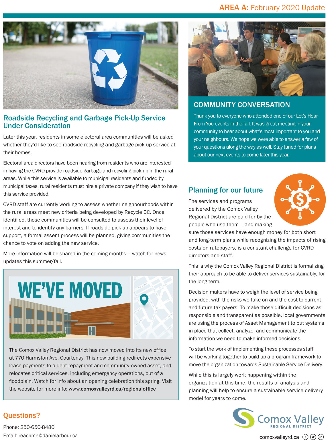 Received a card in my mail “CVRD Electoral Areas Community Update #2”. Followed the instructions to get updates in Area A – wow 2 pages and most of it pictures. I don’t know about you, but I am thoroughly informed! And this massive information is going out a whopping twice a year. How does he keep up this busy schedule?