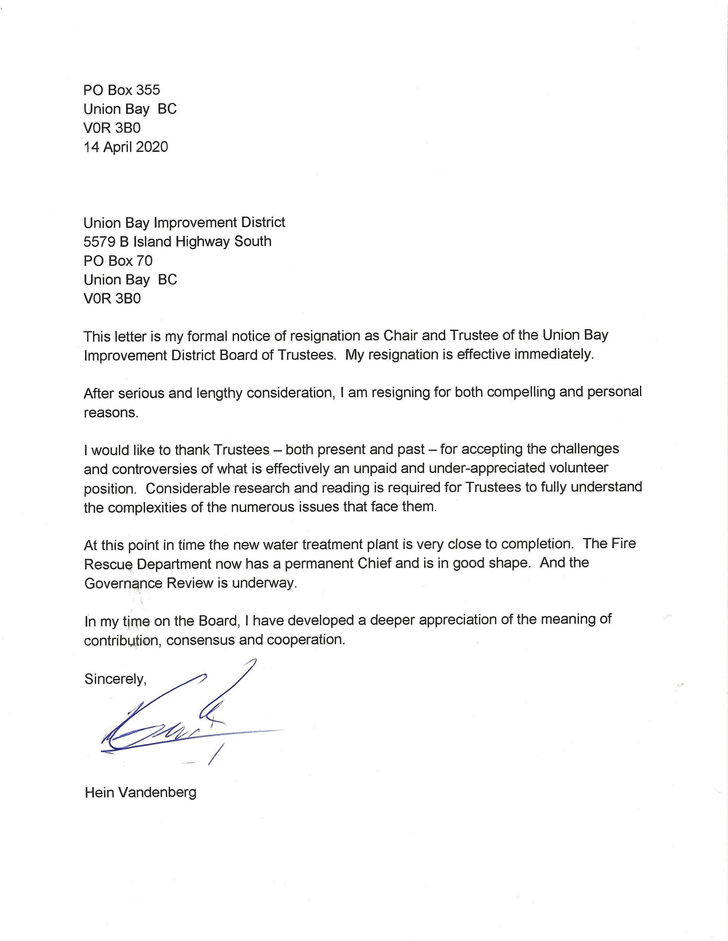 Let’s be clear here. There hasn’t been a proper Union Bay Improvement District Board meeting since June 2016. It has been a shitshow, gong show, and a joke with elected officials bumbling through meetings without any thought to how meetings were held prior to their election. Look at any of the meetings chaired by Carol Molstad – those were proper meetings and are a far cry from the crap we have had to endure since the KIPidiots were elected. With the resignation of those 3 trustees things have gone to hell and there is no way to fix it. How many more years do you want this dysfunction and division to continue? Let’s vote to become a service area. UBID only controls 3 of the scores of services required in Union Bay already provided by the CVRD. The CVRD has the staff and experts we need NOW!