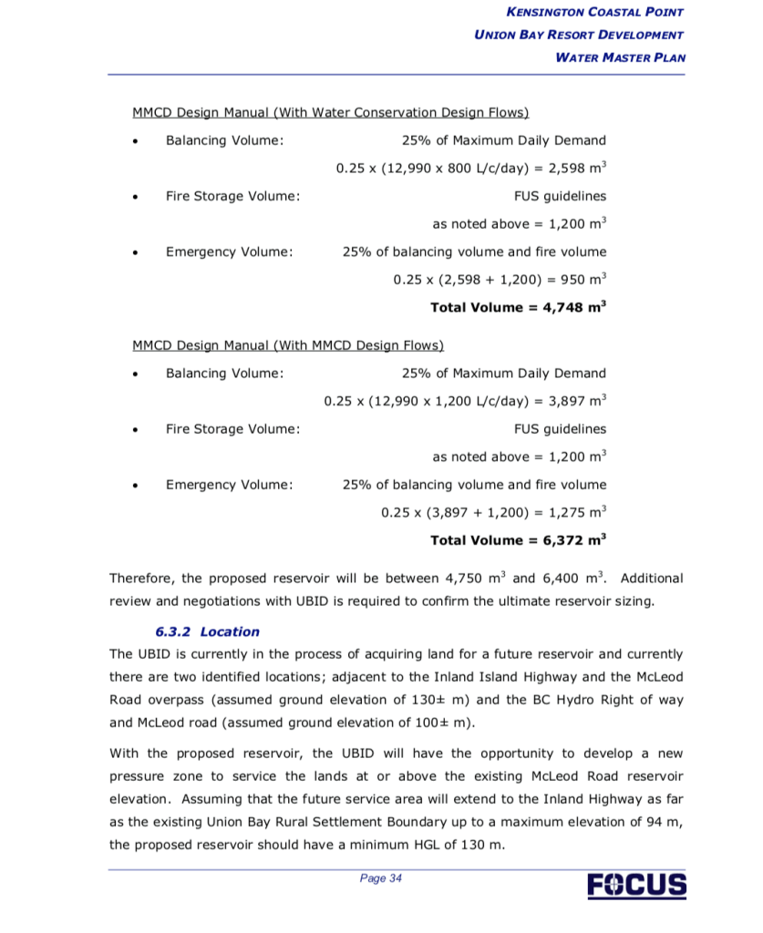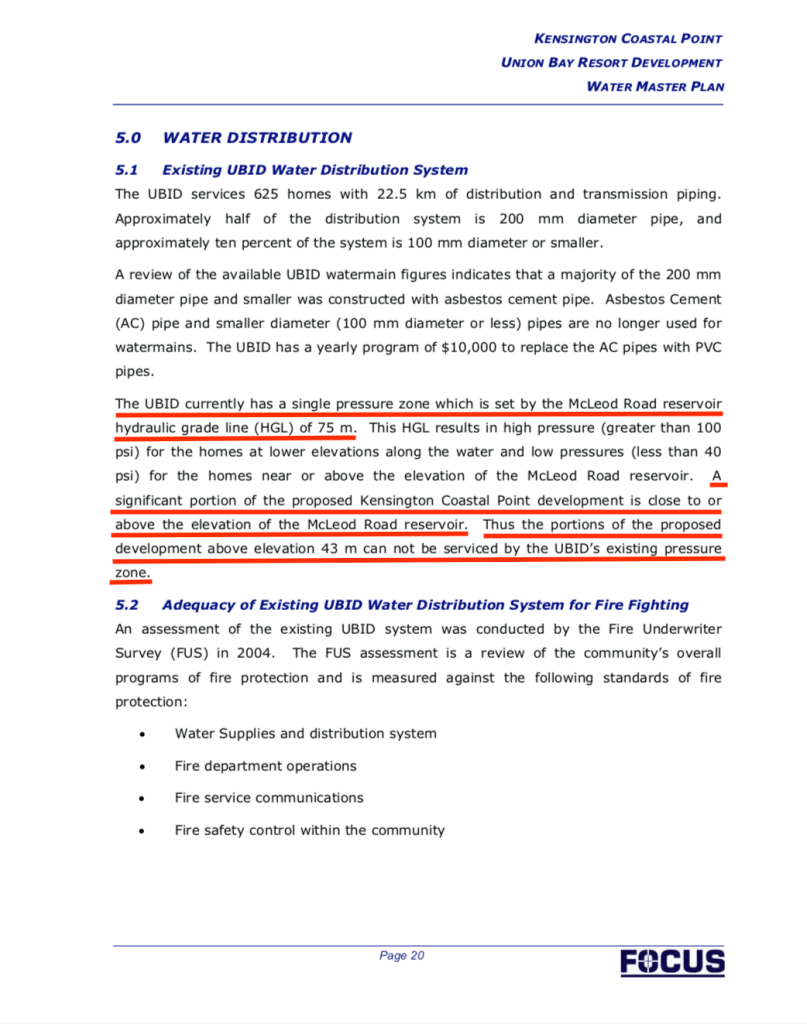KIP’s own consultants stated in order to service parts of KIP’s development at 94 m will require UBID’s water pressure to be a minimum HGL (hydraulic grade line) of 130. The old waterworks was HGL of 75 m.