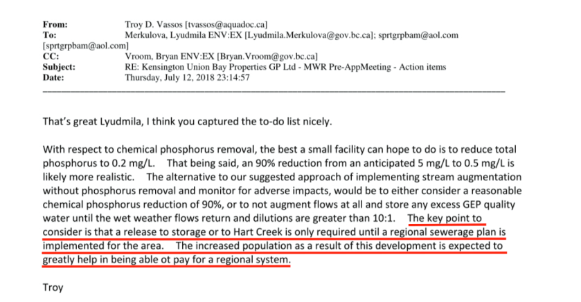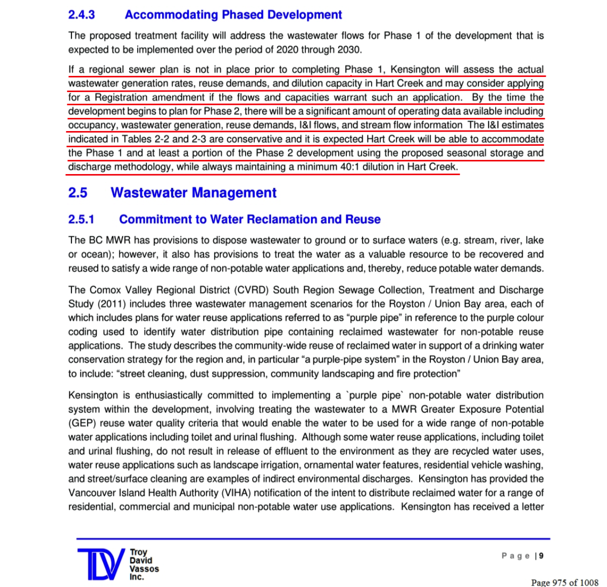 It’s no wonder the CVRD is concerned. After all, they will own the system KIP installs after 2 years. Do they want to own a system dumping into Washer/Hart Creek indefinitely?