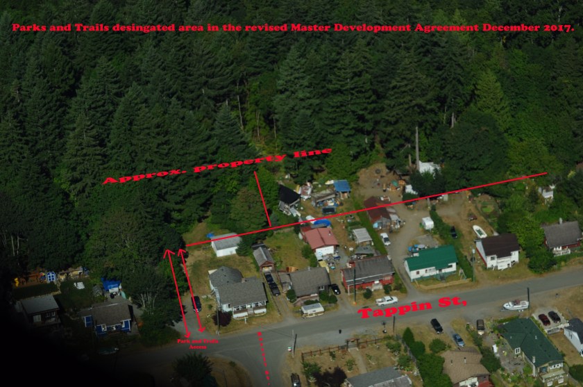 I’m waiting on an answer to an email I sent asking if the buildings and fencing by landowners on KIP’s property will be required to remove them. The image below was taken in 2013 and has only gotten worse. Obviously, I added the red font and approx. property lines. It should be noted the landowners on Tappin were told by KIP years ago they would received the property behind their homes for next to nothing. Some of them went ahead and encroached because they believed KIP – that was a mistake.