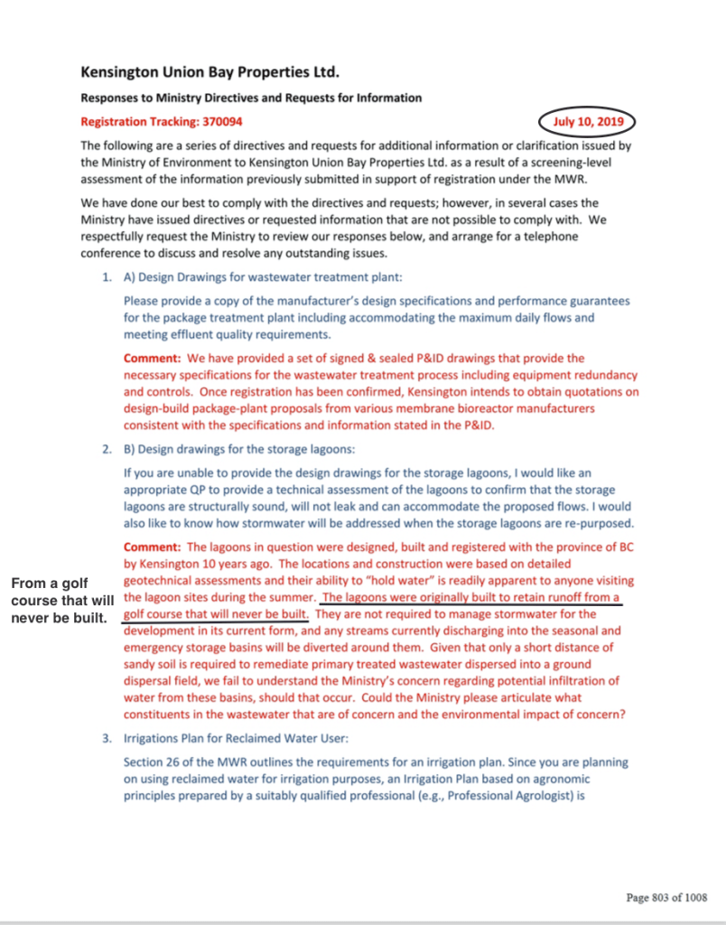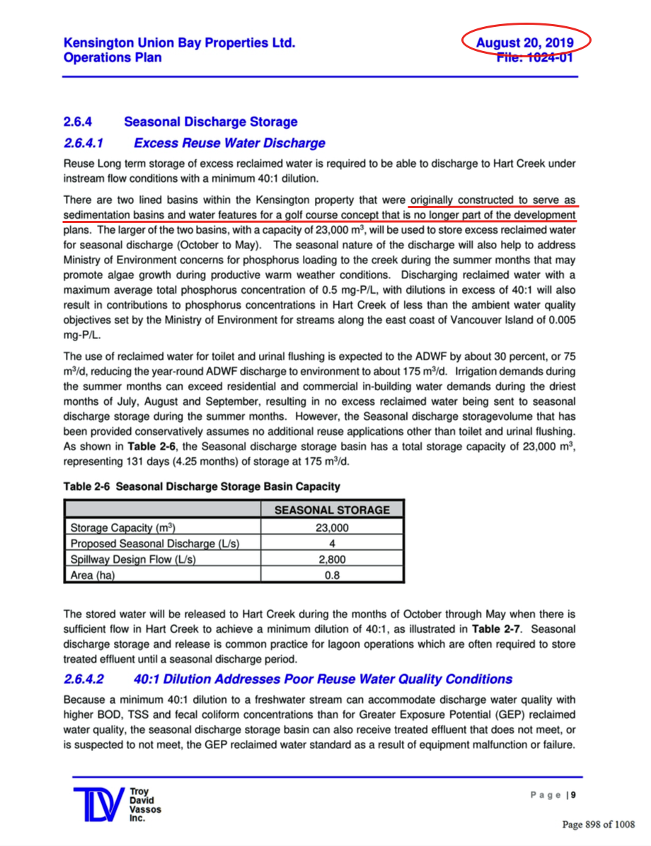 The two pages below are from the FOI response another landowner received for information on KIP’s sewage application to dump 1875 cubic metres of treated sewage into Washer/Hart Creek daily. Clearly, there is no golf course being built. So what’s the plan with all that land?