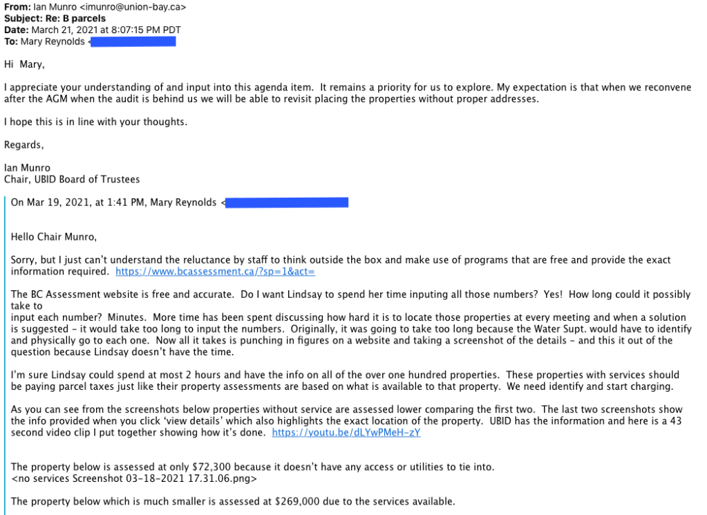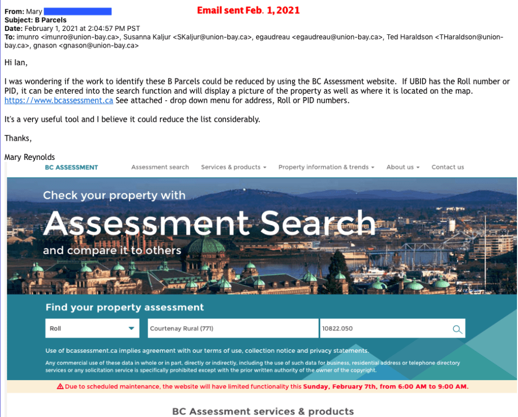 Excerpt of March 18, 2021, my BC Assessment question and the answer.