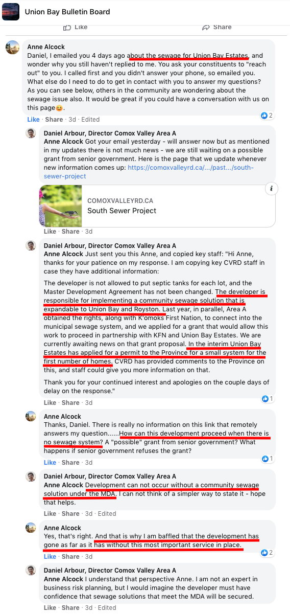 With all the digging going on behind the berm, landowners are wondering why the developer is going ahead without a sewage system in place.