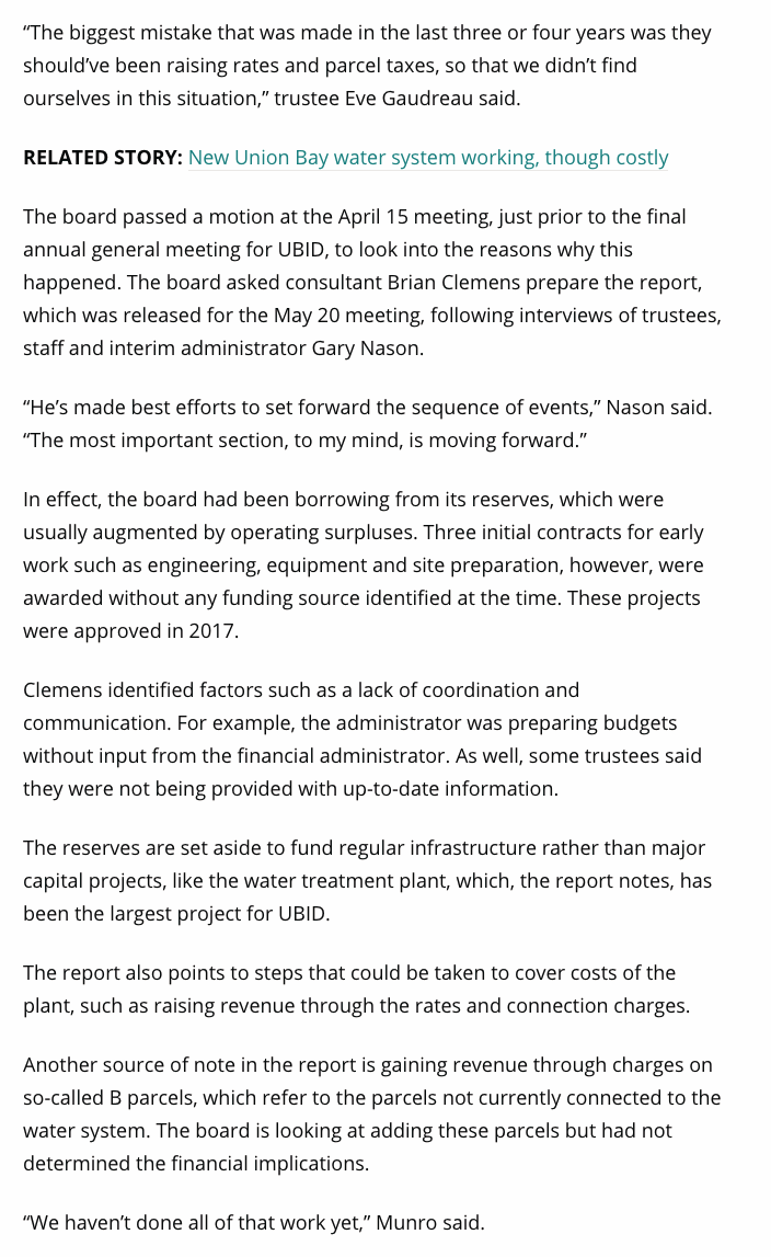 Do you remember in Oct. 2017, the pro kip trustees touting they were building the water treatment plant without raising parcel taxes? These brainiacs never had a financial plan in place and the incompetent admin created budgets without input from the financial administrator he had to hire because he was too busy. Fustercluck.